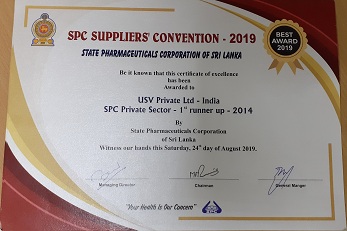 At the 18th suppliers convention held on 24th August 2019 by the SPC, USV was honored with three by the Sri Lankan Minister of health, Nutrition and Indigenous medicine